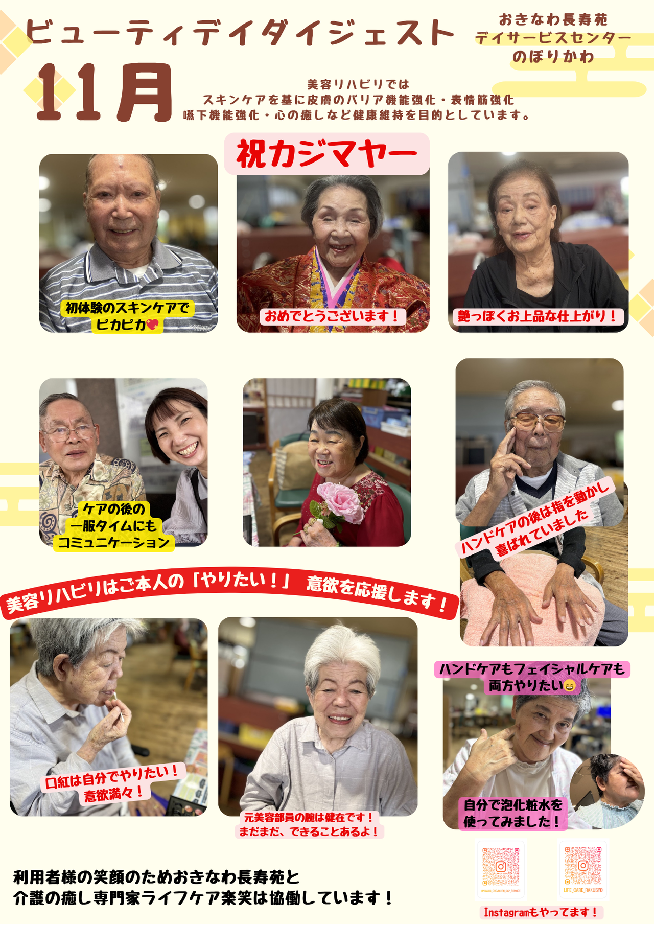 「ビューティ介護で楽しく笑お」は介護・美容にご理解のある事業所さまの応援により支えられております。